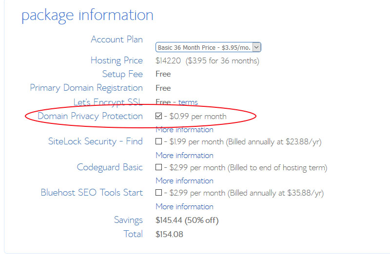 I recommend unchecking all the extra charges EXCEPT FOR the domain privacy protection. I recommend adding the Domain Privacy Protection so that all of your personal information will stay private.